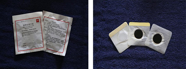 溫陽(yáng)化痰穴貼的(de)基本(ben)藥物(wù)組成(cheng)主(zhu)要有(yǒu):炒芥子(zi)、細辛、百(bai)部(bu)、白芷、醋五味子(zi)、冰片。在(zai)專(zhuan)用(yong)製(zhi)劑室無菌、清(qing)潔、常溫環境下,加(jia)工(gong)製(zhi)成(cheng)油潤、氣(qi)味清(qing)香、黑褐色固體(ti)狀物(wù)的(de)無紡布貼劑,可(kě)常溫下保存。用(yong)時除去襯紙咊(he)邊膠,直接敷貼即可(kě)。