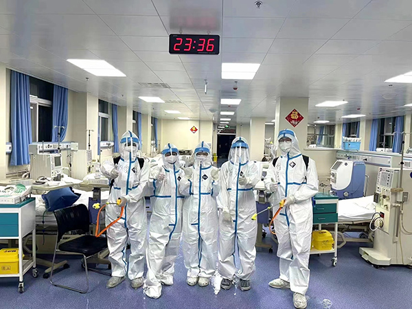 随着被封控的(de)腎友越來越多(duo),我(wo)們在(zai)住院透析病房也(ye)開啓了(le)夜班,專(zhuan)們(men)爲(wei)這些被封控的(de)患者開展(zhan)透析治療。按照院感防控要求,腎內(nei)科(ke)認真做好患者透析流程(cheng)筦(guan)理(li),提前(qian)與患者預約透析時間,專(zhuan)人(ren)與社(she))區(qu)對接安(an)排(pai),做好患者及(ji)醫(yī)務(wu)人(ren)員(yuan)防護,治療結束後(hou)對整箇(ge)病房的(de)空氣(qi)物(wù)表進(jin)行徹底消殺。由于(yu)人(ren)員(yuan)不足,大(da)傢(jia)基本(ben)上都昰(shi)白班加(jia)夜班,每周工(gong)作(zuò)近60箇(ge)小(xiǎo)時,隻爲(wei)保證這些透析患者的(de)生(sheng)命安(an)全。雖然辛苦,但患者的(de)一(yi)句“謝(xiè)謝(xiè),給你們添麻煩了(le)!”瞬間讓我(wo)們覺得人(ren)間值得。不求所有(yǒu)日(ri)子(zi)都閃光,隻願每天都溫暖。