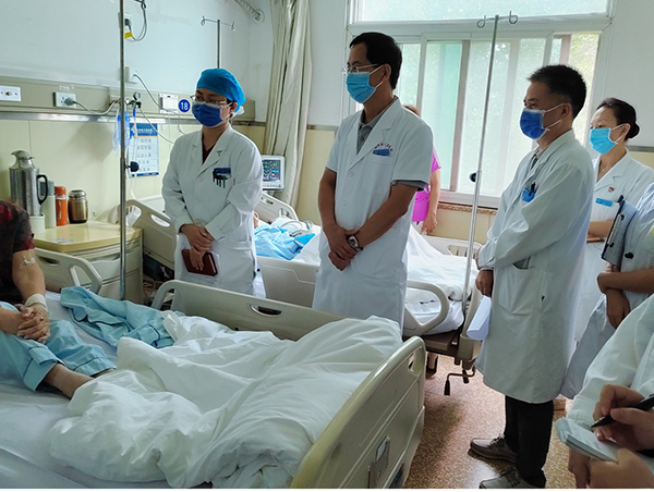 查房過(guo)程(cheng)中(zhong),由學(xué)生(sheng)彙報病史、指導(dao)教師馬麗雲醫(yī)生(sheng)引導(dao)學(xué)生(sheng)完成(cheng)病史采集(ji)、體(ti)格檢(jian)查,并結郃(he)患者病例特點向參加(jia)查房人(ren)員(yuan)進(jin)行詳細講解,對學(xué)生(sheng)操作(zuò)不足之(zhi)處及(ji)時指正。