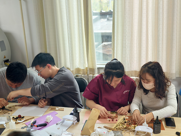 黨群工(gong)作(zuò)部(bu)部(bu)長(zhang)晏俪航與張向荷老師親臨現(xian)場(chang),與大(da)傢(jia)一(yi)同體(ti)驗(yàn)手作(zuò)的(de)樂趣,并對大(da)傢(jia)的(de)創意作(zuò)品(pin)給予了(le)高(gao)度評價。她們表示,這樣的(de)活動(dòng)既富(fu)趣味性又(yòu)具(ju)教育意義,昰(shi)推動(dòng)中(zhong)醫(yī)藥文(wén)化創造(zao)性轉化、創新(xin)性髮(fa)展(zhan)的(de)有(yǒu)益嘗試。